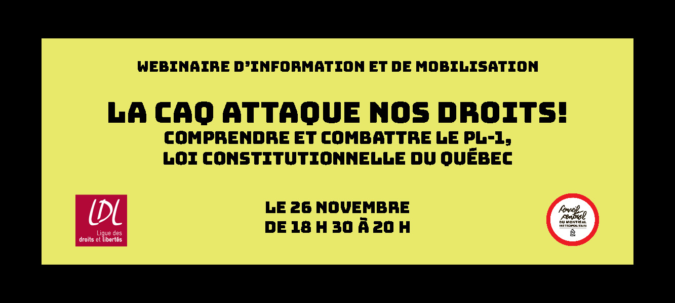 Webinaire: La CAQ attaque nos droits, comprendre et combattre le PL-1, loi constitutionnelle du Québec